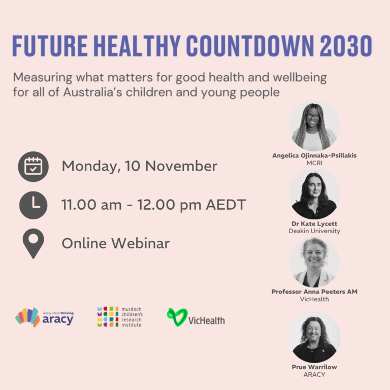 Hosted by ARACY together with the National Child and Family Hubs which is hosted by the Centre for Community Child Health at Murdoch Children’s Research Institute (MCRI).