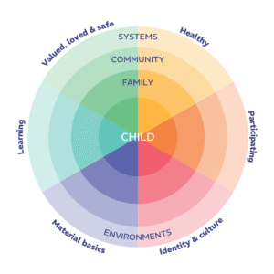 We use ARACY’s wellbeing wheel (below) to guide our understanding of holistic wellbeing across the domains of The Nest, helping participants consider the full spectrum of social, emotional, physical, and cognitive factors that influence young people’s lives.